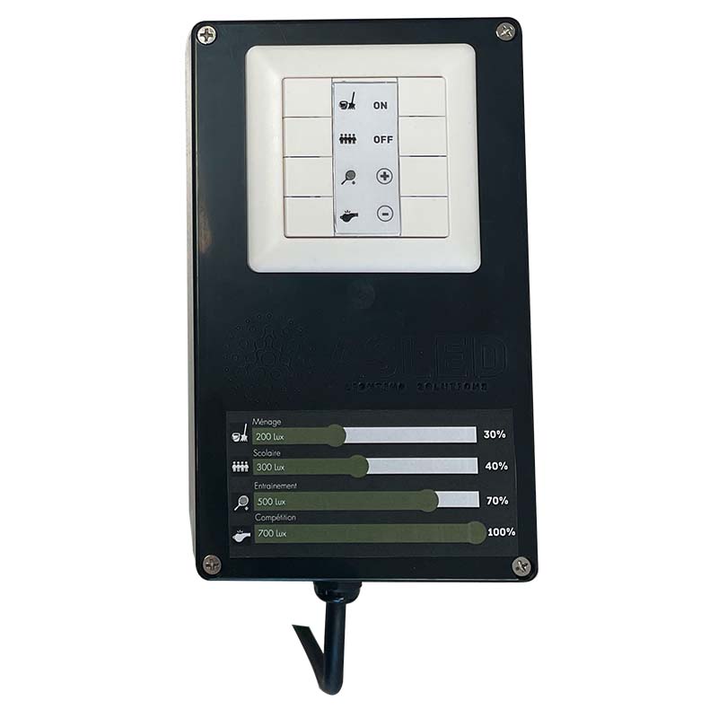 Ce boitier de commande DALI préprogrammé est compatible avec tous les luminaires DALI de la gamme ASLED.