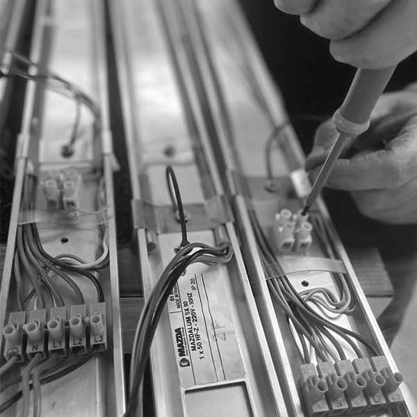 Nous intervenons sur les modules LED, drivers, optiques, fixations, câblages, systèmes de pilotage, etc. Toujours avec des pièces compatibles ou équivalentes.